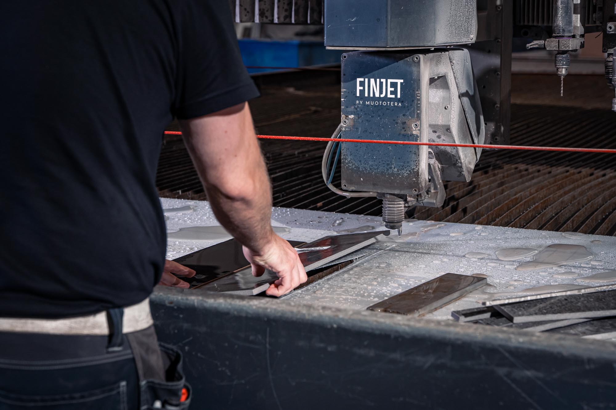 Muototerä betreibt sieben moderne Wasserstrahlschneidanlagen, mit denen wir Materialien unserer Kunden oder aus unserem eigenen Lager präzise und wirtschaftlich bearbeiten.Dank hochmoderner Technik und erfahrenem Fachpersonal ist unser Schneidservice schnell, zuverlässig und kostenoptimiert.