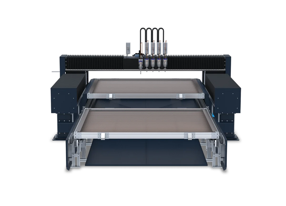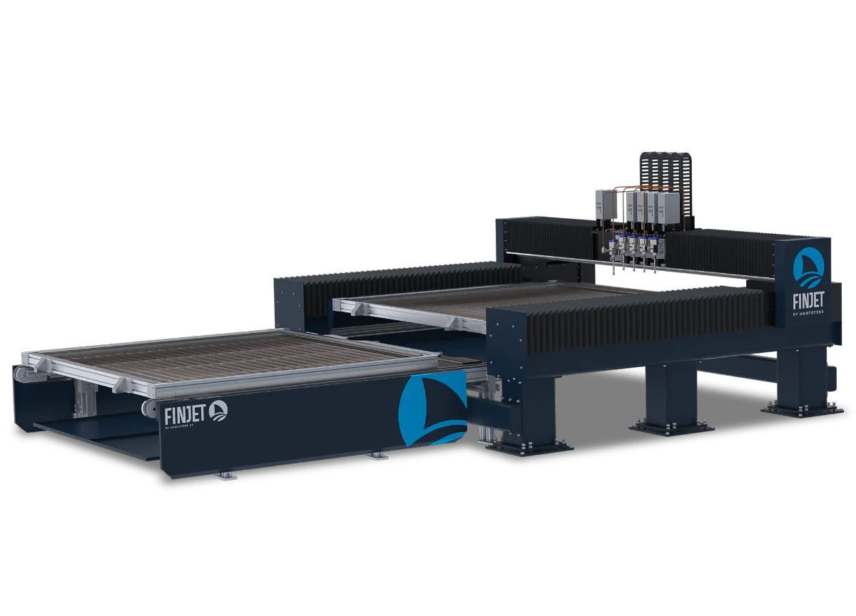 FinJet H-series is designed for continuous heavy duty waterjet cutting. Its modular portal design enables numerous different variations so that every demanding need can be fulfilled. H-series can be equipped with several cutting heads including 5- axis bevel cutting units.