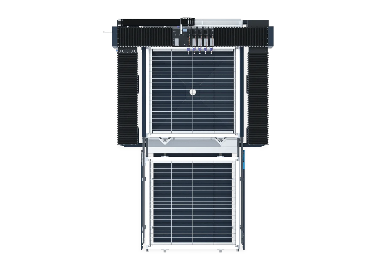 Suttle table enables simultaneous cutting and part exchange. Automation takes care of the tables and adjusts them according to the material thickness.