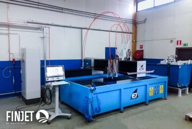 • Specialties: Designed for school, cutting area isolated with fences and safety circuits. Two cutting heads, 6.200 bar ultra-high pressure pump